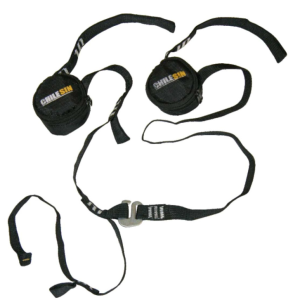 - Arnés de asiento removible con tabla de aluminio y anillos de suspensión en D.