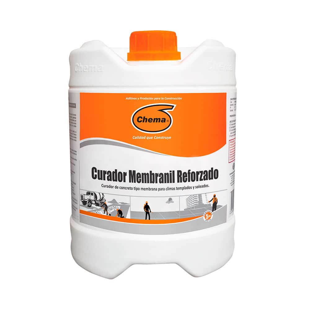 MEMBRANIL REFORZADO es un líquido de curado a base de polímero acrílico especialmente aditivado que lo hace formar una membrana impermeable de alta retención de agua sobre el concreto fresco, evitando que esta se evapore proporcionando una hidratación adecuada del concreto. Este tratamiento reemplaza al curado tradicional que se realiza durante 7 días con agua. Este producto cumple con las especificaciones de la norma ASTM C-309, Tipo I, Clase A (Standard Specification for Liquid Membrane-Forming Compounds for Curing Concrete).