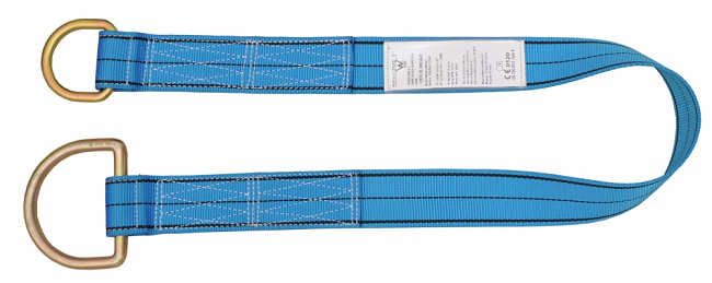 - Punto de anclaje fabricado en cinta de poliéster de 44mm, longitud total de 1,20 metros + 1 anilla pequeña en aluminio ligera en un extremo + 1 anilla de aluminio ligera grande en el otro extremo.