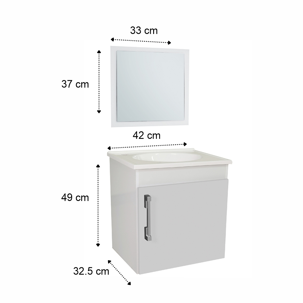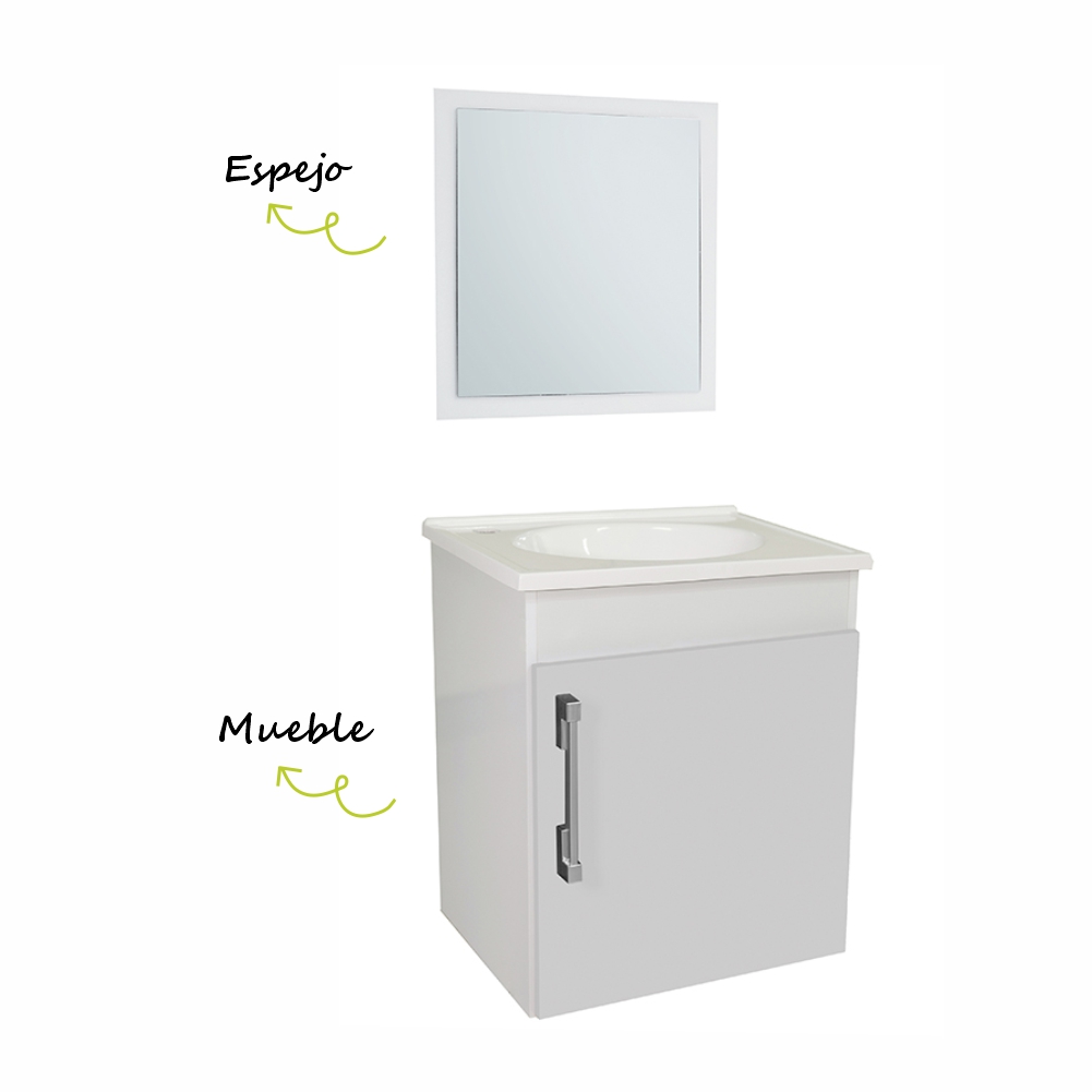 Vanitorio fabricado a base de MDF laqueado con pintura poliuretánica. Mueble en resina de Poliéster. Ideal para ahorrar espacio y mantener en orden los accesorios de aseo dentro del baño. Con un diseño clásico y minimalista; su puerta de fácil apertura es una muy buen opción para renovar la decoración de este espacio tan especial.