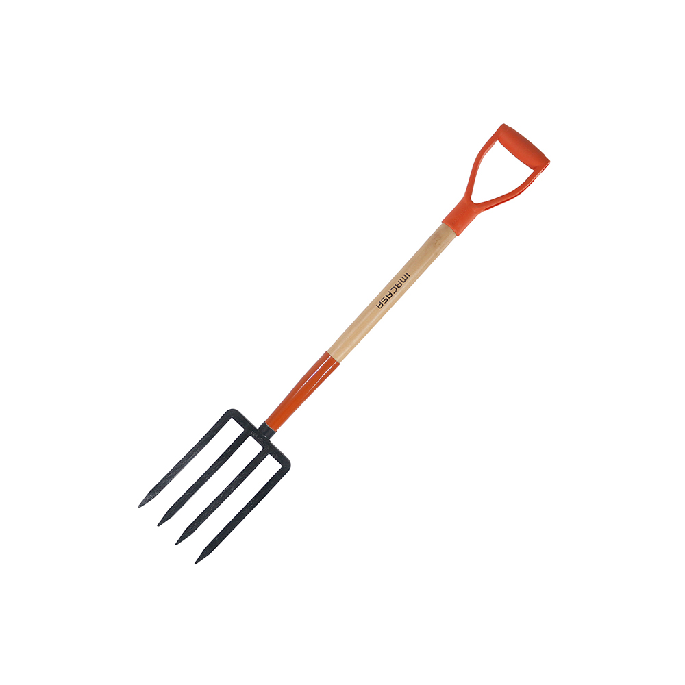Pensando en quienes disfrutan del trabajo de la tierra y cuidado de las plantas. El tenedor es adecuado para ablandar la tierra y revolver el suelo. Madera dura con virola de acero.
